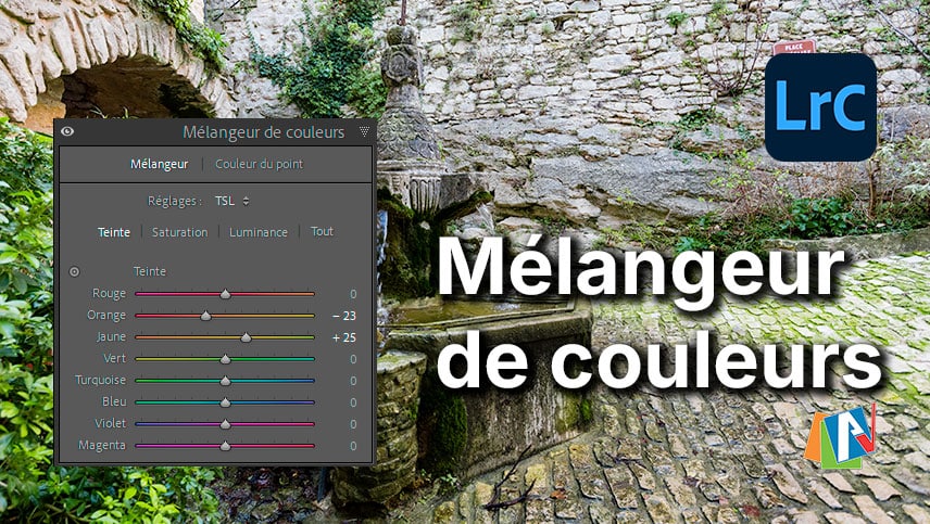 Le panneau Mélangeur de couleurs permet d’agir finement sur chaque couleur de l’image, en ajustant indépendamment la teinte, la saturation et la luminance. C’est un outil essentiel pour corriger des dominantes, renforcer une ambiance ou harmoniser les couleurs sans affecter l’ensemble de la photo.